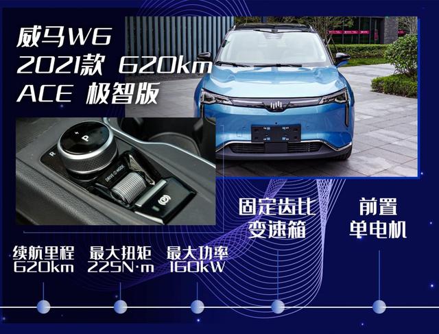 而威马W6则实用了许多,威马为其配备了高效能三合一电机。虽然为感应式电机,但是转化效能却高达95%。不仅如此,160kW的最大功率,相比起主打运动感的MARVEL R来说,也毫不逊色。