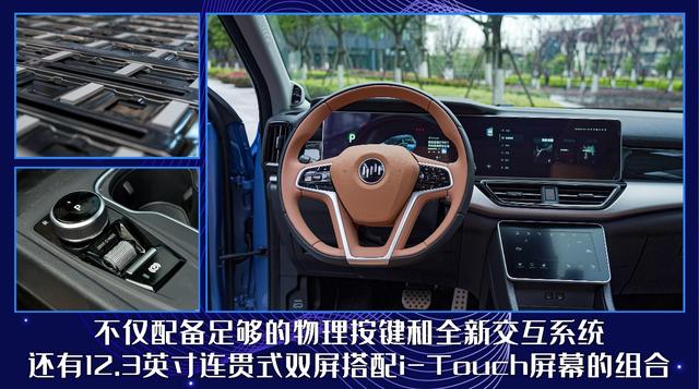 在内饰方面,威马W6采用的全新一代智能交互系统,不仅在设计上保证了足够数量的物理按键,还搭载了高通8155芯片以及全新人机交互系统,12.3英寸连贯式双屏配i-Touch屏幕,三屏交互让座舱内充满了未来感。