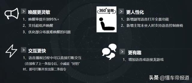 此外,本次OTA还带来了语音交互的升级体验,新增成语接龙、车内安全播报等语音功能,支持超低声唤醒,唤醒成功率超95%。