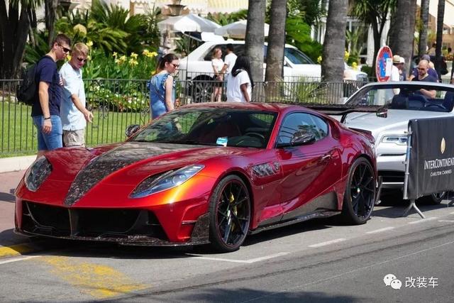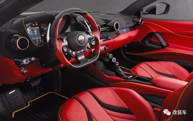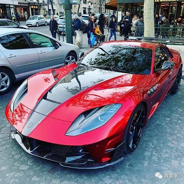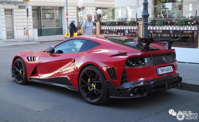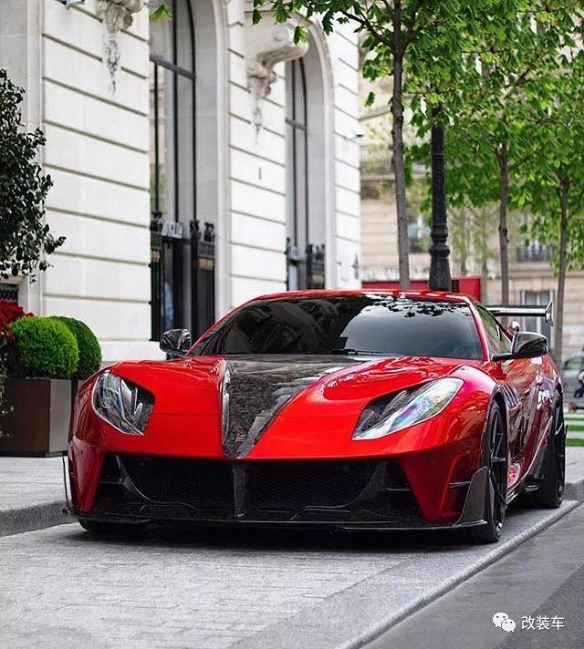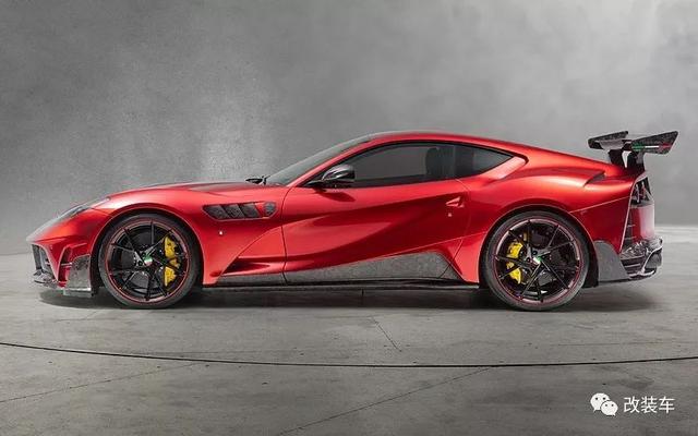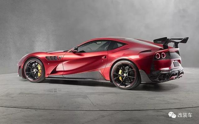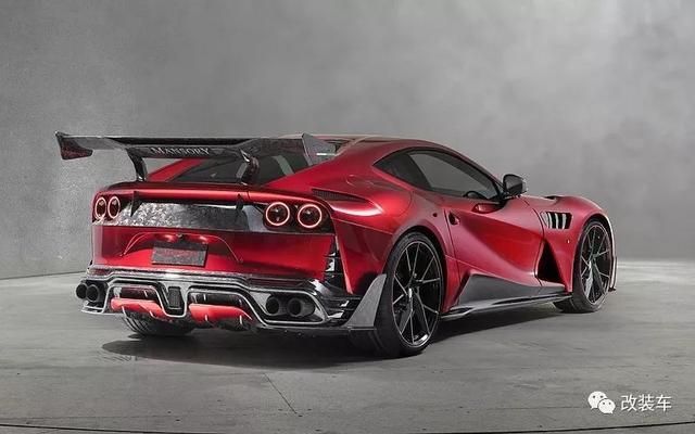 法拉利812 Superfast,"8"代表800匹,"12"代表12缸,简单来说这就是目前法拉利动力最高的车型。不仅拥有暴躁的性能,通过车型外观还能感受到空气动力的设计,例如前脸的大嘴,强有力的腰线,巨大的后扩散器等。而这一切在以碳纤维而闻名世界的"卖碳翁"Mansory眼中,仍有大幅度"动刀"的地方。