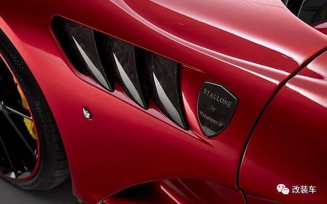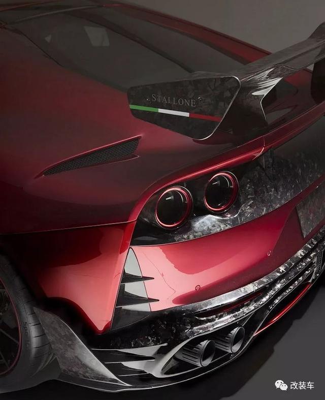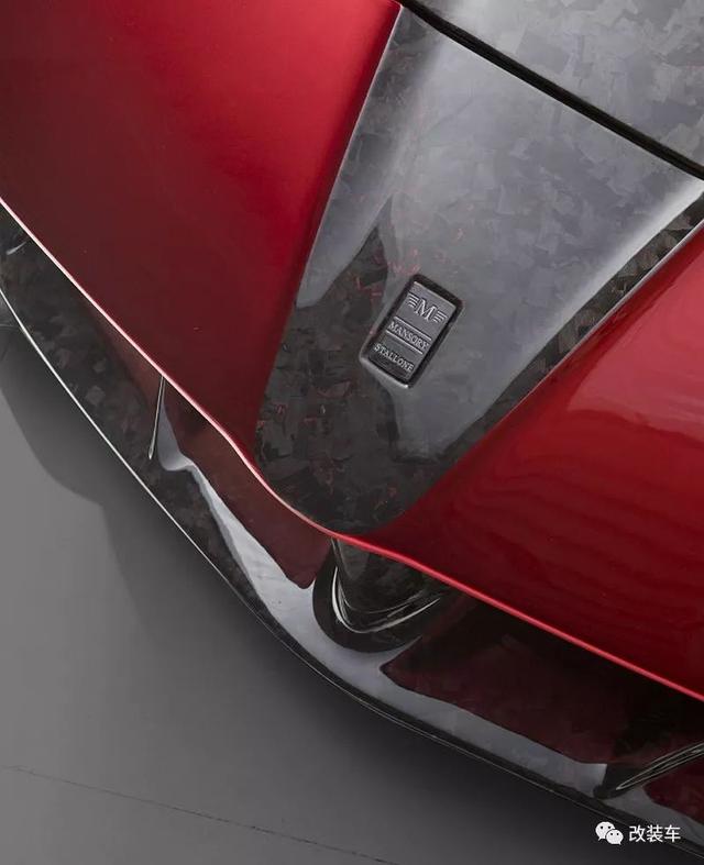 车尾处更是令大家瞠目结舌的地方,全碳纤维的固定式大型尾翼在两侧带有Stallone的标识,在尾翼下面也有Mansory的字样。整个后唇经过完完全全升级后,十分具有侵略性的后唇采用了多层的设计,可活动的后扩散器改成了双边,而且还加入了与F1类似的后雾灯,绝对震撼。