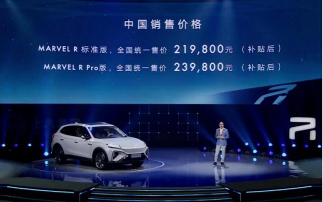 配置方面,MARVEL R标配了19寸轮毂、后驻车雷达、360°全景影像、定速巡航、全景天窗、电尾门、电池预加热、真皮多功能方向盘、12.3英寸液晶仪表、主副驾座椅电动调节、前排座椅加热、19.4英寸中控巨屏、OTA升级、智能语音识别、LED大灯等。