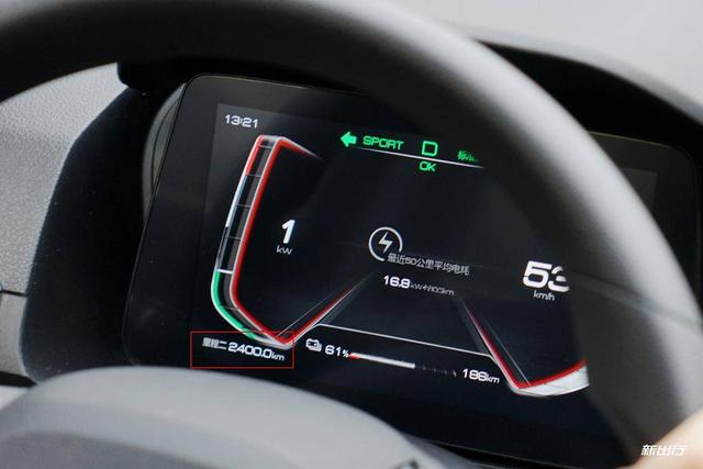 不过这一次,在返程的时候我们车上是满载的 4 人,并且气温相对较低需要开暖风,而且同行的媒体一直使用的都是 SPORT 模式和标准动能回收模式。所以我决定看一看 e2 在这种情况下的续航表现。测试时车辆还剩余 61% 以及 186km 的续航。