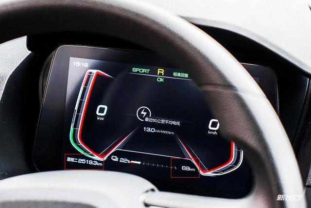 最后当天该路段在满载 4 人、空调暖风以及 SPORT 模式下行驶 119.3km 后,e3 仪表盘显示可行驶续航里程还有 68km 和 22% 的电量。按照这样的比例来算,在此次行驶中 e2 共行驶了 119.3km 仪表盘掉了 118km,这样的成绩确实表现不错。