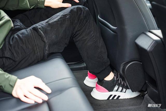另外,比较好评的是比亚迪 e2 尽量的去扩展用户的乘坐空间。例如,后排乘客的脚可以伸到前排座椅下方、第二排中间的趋近于纯平的地台放下 41 码的脚轻轻松松。