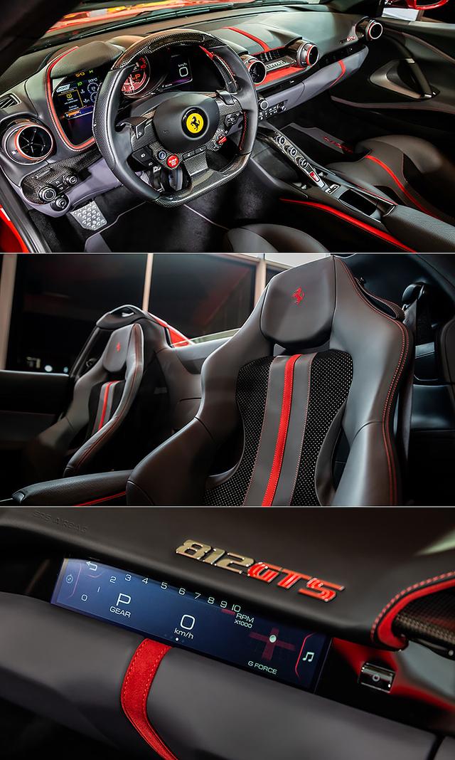 底盘配置部份,812 GTS 亦导入了 SSC 5.0 侧滑角控制系统及 PCV 虚拟短轴距 2.0 系统,重新设定后的磁流变阻尼悬挂系统,也为 812 GTS 创造出可比拟硬顶车型的灵活悬挂操控反应,透过诸多底盘设定上的提升,让 812 GTS 即使因配置可折叠式硬顶敞篷而增加 120 公斤重量,仍可保有出色的整体操控性能表现。