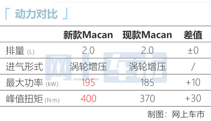 近日网上车市从保时捷官方获悉,新款Macan现已在国内接受预订,共推出Macan、Macan S以及Macan GTS三种车型,新车将在8月27日开幕的成都车展中首发亮相。作为中期改款车型,Macan对外观和内饰细节进行调整,新车动力上搭载2.0T、2.9T(高/低功率)发动机,现款3.0T发动机被2.9T低功率发动机替代,全系动力均有提升,传动系统匹配7速PDK双离合变速箱。