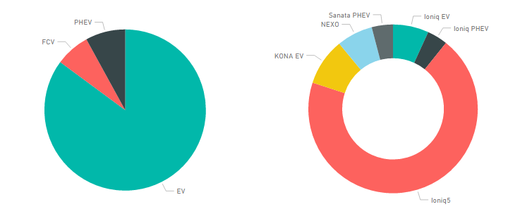 现代汽车在6月份的新能源销量为10,912台,最重要的特点还是插电式混动的数量只有934台,只是和燃料电池的808台相当,而纯电占到了9978台。