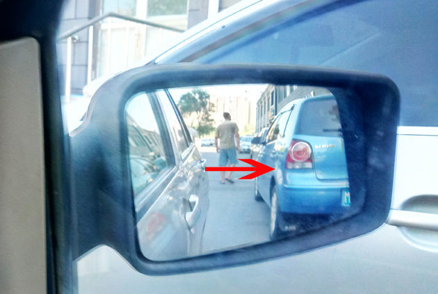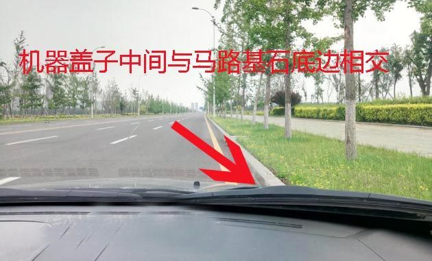 此时你看不到轮子,只能通过平时训练的参照物。你可以看车头正中间和马路边缘相交,这代表右前轮已经走到,距离道路边缘大约20公分的最小距离,此时要快速向左立方向,车体会逐渐与路边缘平行,并保持最小距离。
