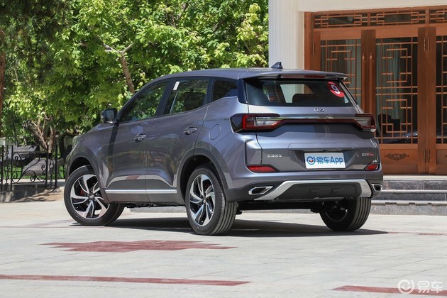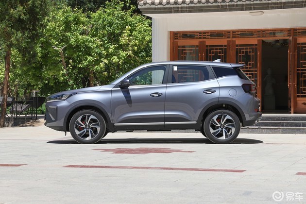 车身侧面,新车B/C/D柱采用熏黑隐藏式设计,营造出悬浮式车顶的视觉效果。一条微微扬起的腰线增强了侧面硬朗的视觉效果,新车尺寸为4400/1831/1653mm,轴距为2632mm。车身尺寸比同价位的瑞虎5x有优势,但是和远景X6相比,要稍微逊色一些。