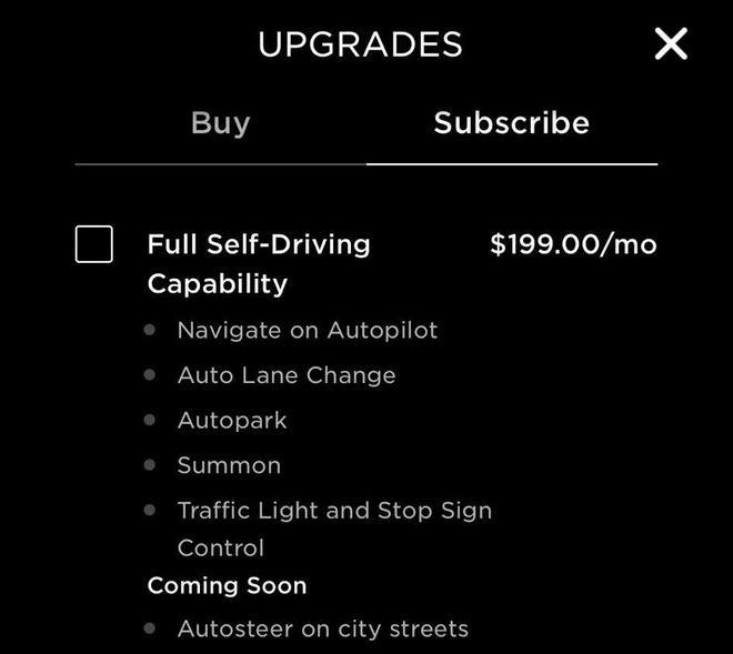 而后没过多久,在7月17日,特斯拉面向美国地区推出了FSD订阅服务,相较于一次性买断的1万美元(约6.47万人民币),这次订阅服务为按月计费,随时可以取消,已购买EAP的月收费99美元(约641人民币),而只是基础版AP的话则需每月支付199美元(约1289人民币),方可享受FSD功能。
