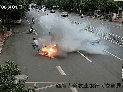 同样的爆炸 只能替小伙子庆幸跑得快