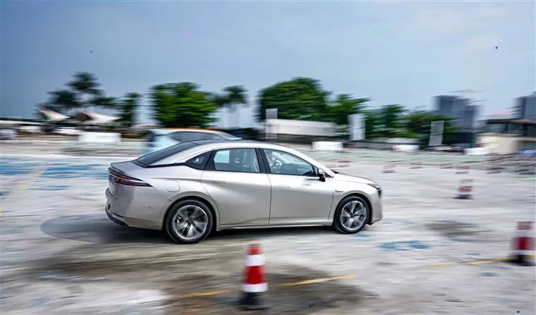 首先是AION S Plus,轿车在弯道上有天然的优势,但由于纯电车型比较重,所以整车的操控还是会让人有些担心。实际上,AION S Plus不仅起步时有足够强的推背感,刹停的时候也是又快又稳,在过弯的时候,底盘虽说是舒适性取向,但支撑性可圈可点,绕桩时更加体现出车身的灵活和转向的精准。
