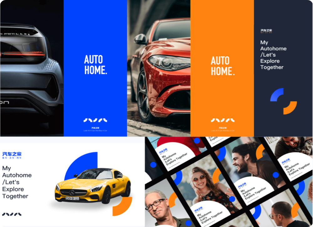 基于品牌logo的笔划结构拆解;融入产品属性(车灯、方向盘、轮胎等)独有调性;结合产品特征及升级目标,提炼超级辅助图形;