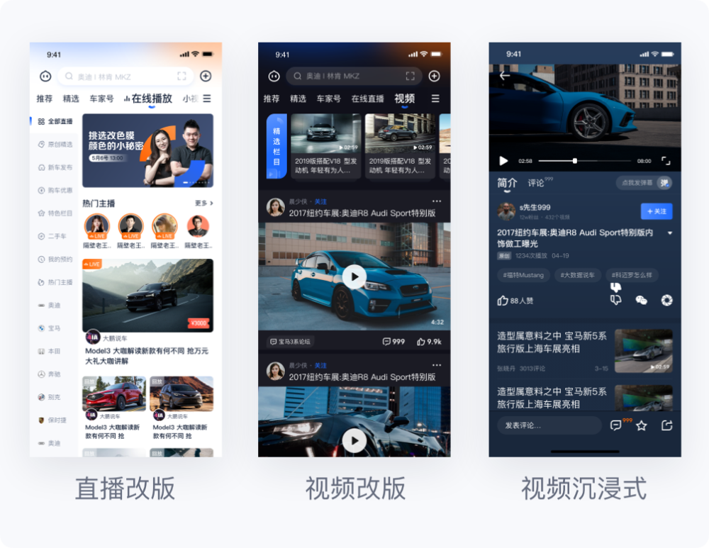 内容作为汽车之家产品内核的重要组成部分,始终是吸引用户的关键。此次改版除了内容本身的升级,也在寻求更加合理的呈现形式,从而更高效的传达给用户。结合当前主流视频产品的优劣势,对汽车之家视频和直播页进行优化,力争通过形式与内容抓住年轻用户的心。