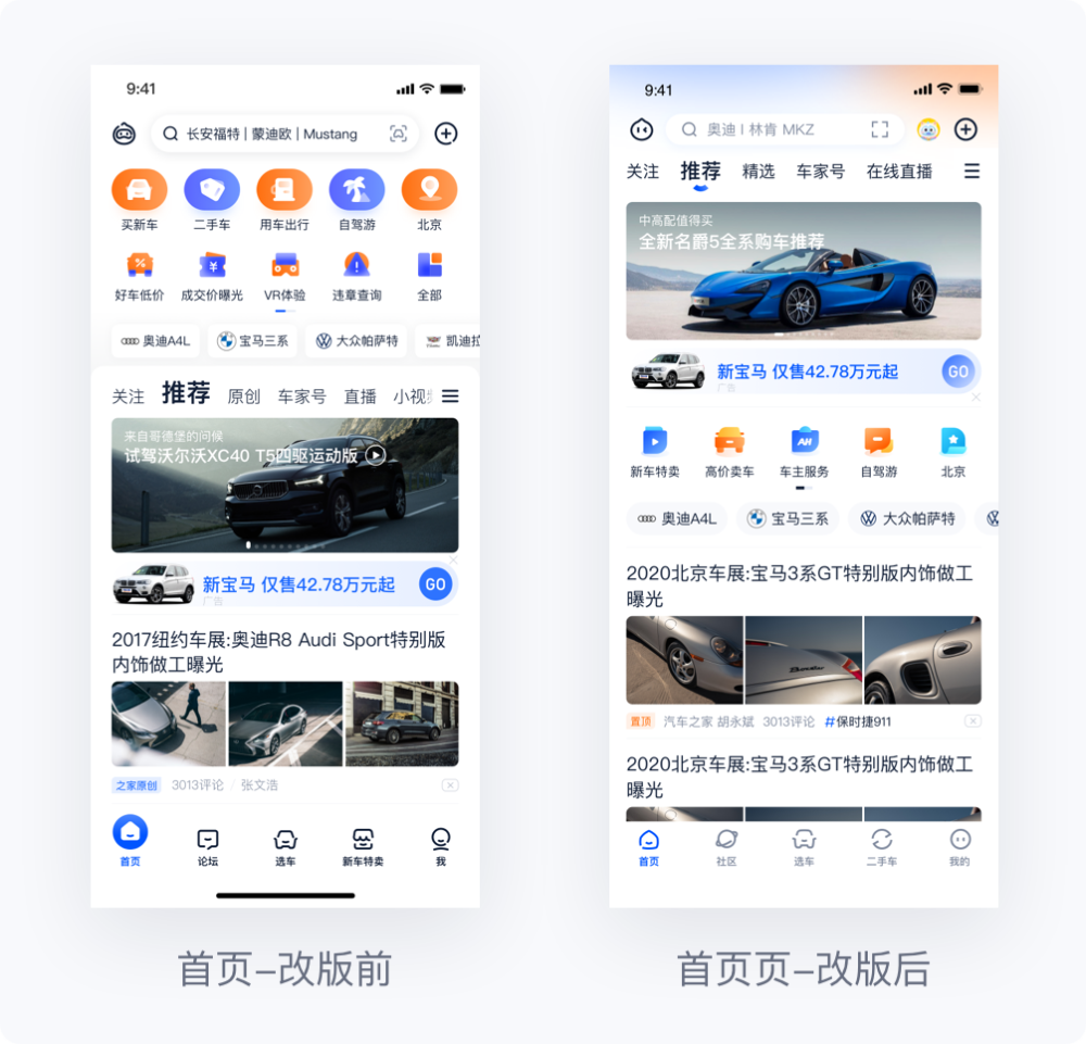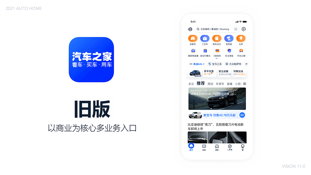 汽车之家APP 11.0 全新改版焕「新」来袭,将带来了全新感官体验。围绕「品牌」「用户」「认知」这三大维度,历经数月,从用户反馈、用户内测、体验评价、竞品对比等,梳理汽车之家APP 的核心改进问题。