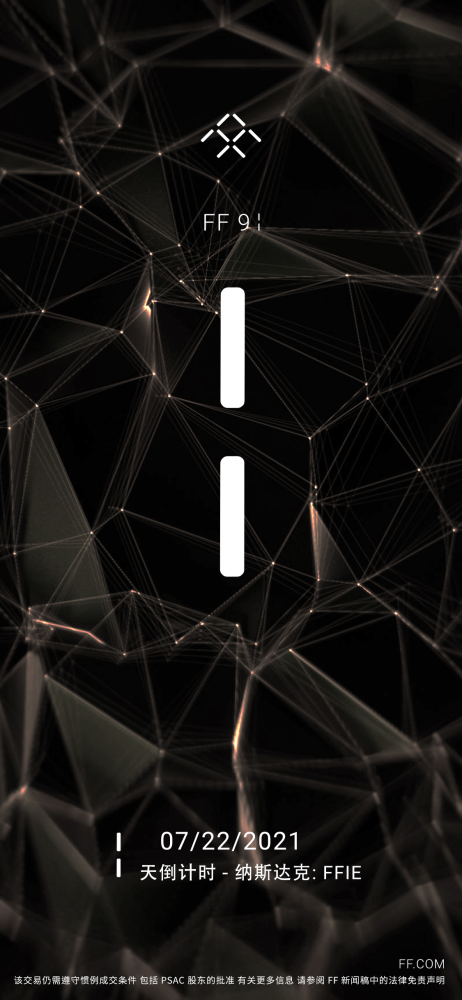 官方倒计时海报显示,FF将于7月22日正式登陆纳斯达克。同时,FF于近日宣布推出了全新的强交互性的FF Intelligent App,用户可以在该应用程序上预订FF 91。而且,用户通过FF Intelligent App 将成为FF用户生态系统的一部分, 不仅可以体验到FF社群、产品和技术的领先优势,还让用户有机会为FF的产品和业务提供意见和建议。FF Intelligent App从今天开始可供下载,适配iOS和Android操作系统,用户可以在苹果应用商店和安卓应用商店搜索 "Faraday Future" 免费下载,您也可以在浏览器输入http://appdownload.ff.com下载FF Intelligent App。