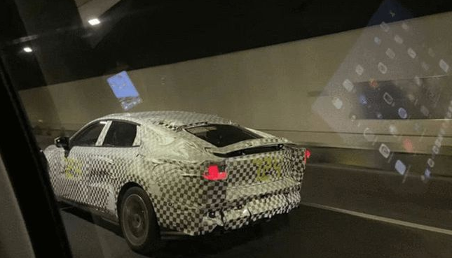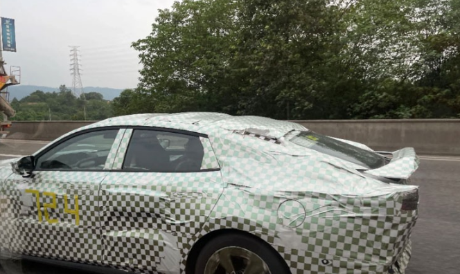 车身侧面,目前还未得知新车的尺寸,不过我们可以从车辆的行驶动态中可以看到,新车的尾翼处于上升状态,由此可见,新车打造更出色的运动风格,配备了可升降式尾翼,运动风格凌厉。此外,新车采用的是轿跑式的车身设计,溜背的造型看上去十分动感。