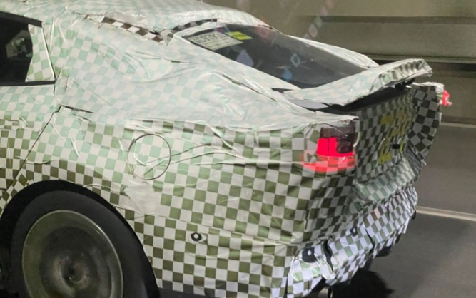 车尾部分,新车采用了一个比较方正的轮廓,由于伪装比较重,我们发现不出变化细节,但可以看出来的是底部采用了很有层次感的运动包围。