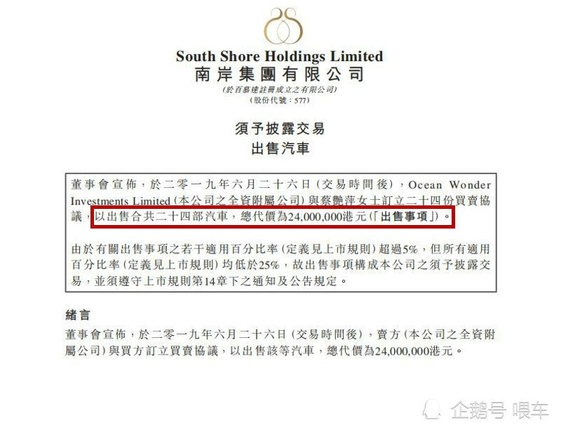 拿不到赌牌,多次改名也不能转运,先是路易十三,之后是十三集团,现在叫做南岸集团。在2019年,以南岸集团的名义卖掉了24台幻影,折合港币2400万,每一台只有100万港币。要知道,这些车每一台的订制费用就上百万了,这么白菜的价格出手你一定很惊讶,其实这是一种变相还债的方式,而接盘这批车的人是一位神秘女士,叫蔡艳萍。
