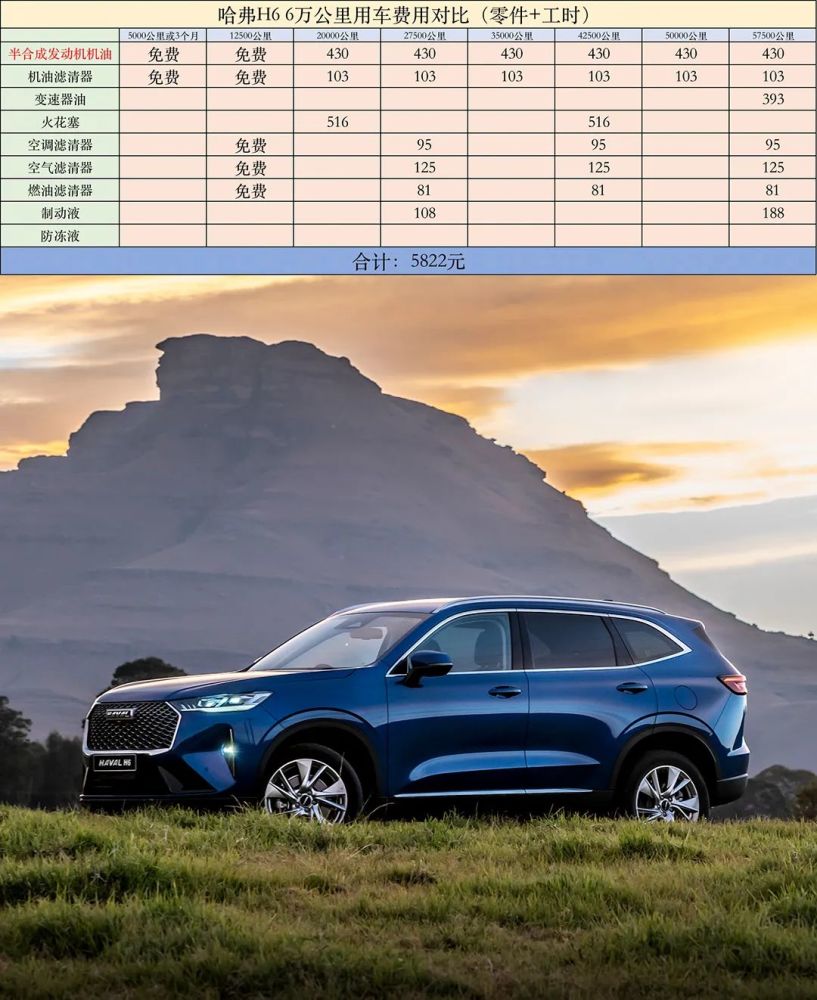 零部件的费用上,除了哈弗H6的火花塞比较贵之外,无论配件或工时,都于博越差不多,但是保养的项目却多一些,如果按照长城与吉利的保养计划继续进行,H6的使用成本将大大超过博越。简单来说,两车到达7万公里都会进行两次保养,博越将花费1340元,而哈弗H6翻了两倍多,费用达到3661元,可以想象,在H6这个庞大的用户基数下,售后可是一笔稳定且丰厚的现金流。