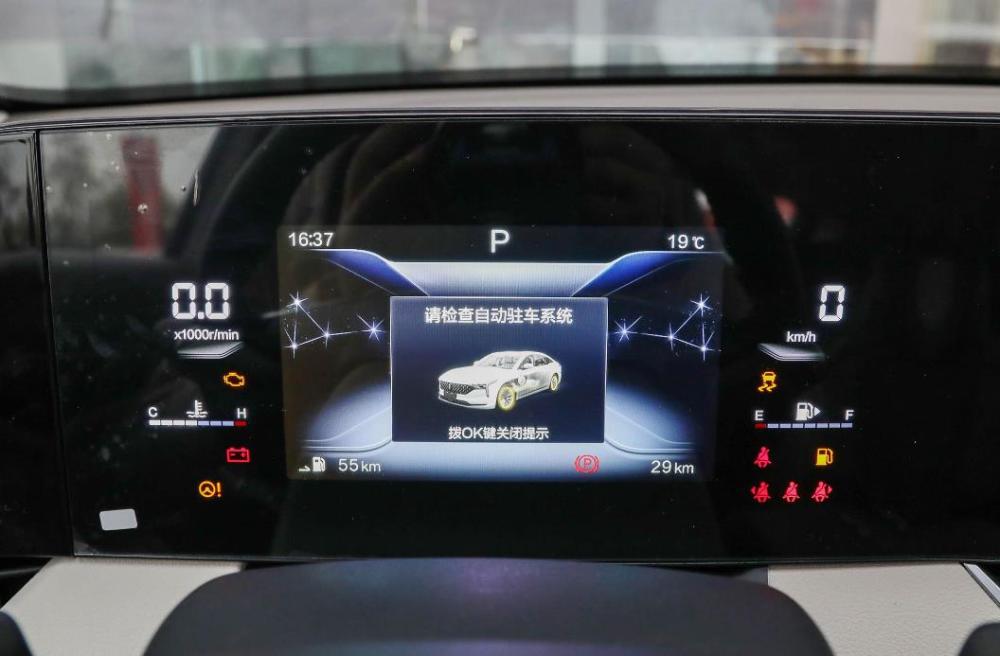 透过方向盘能看到7英寸液晶仪表,表盘看着较为炫酷,最左侧是转速表,最右侧是时速表,都采用数字显示,观看行车信息比较方便。