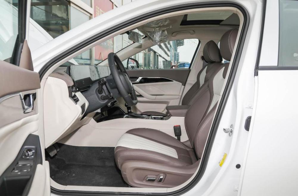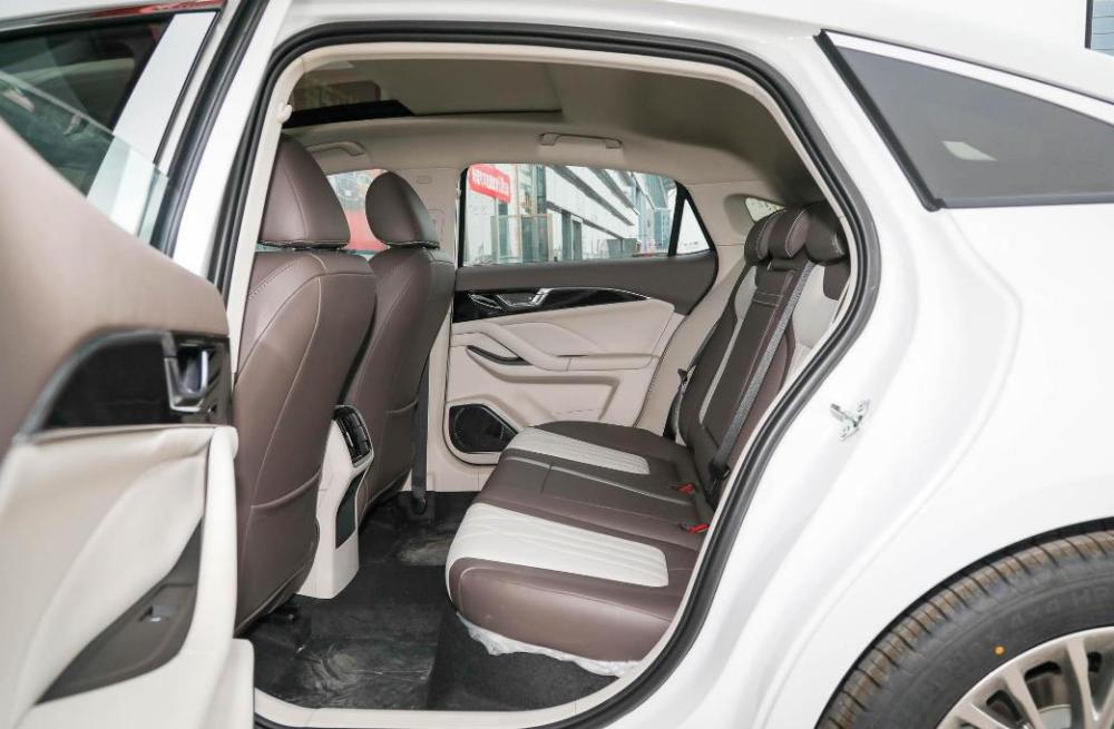 这款车的长宽高分别是:4810*1840*1455毫米,轴距2800毫米。车身尺寸在中型轿车里面属于中等水平,它的乘坐空间是否宽裕,一起看看。身高1.75米的乘客坐进前排,头部空间一拳。坐进后排,头部空间三指,腿部空间将近三拳。这款车乘坐空间和横向空间都够用,满载五人不会拥挤。座椅面料是仿皮包裹的,坐上去舒适性还不错,有包裹性。后排还配有比例放倒功能,增加了储物能力。