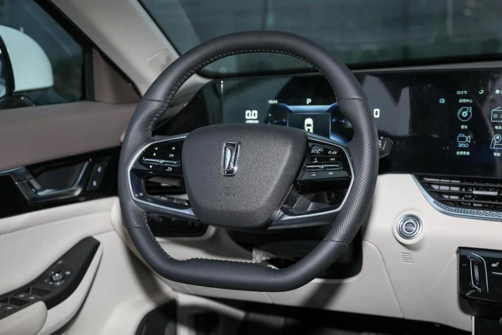 进入到前排,中控区域整体看着比较规整,上手简单容易。方向盘采用平底设计,真皮包裹,手感细腻并且防滑,两侧按键布局整齐,用手按着反馈力度刚好合适。