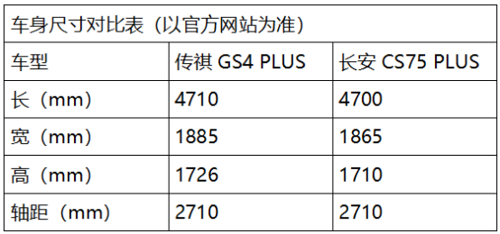 数据能够佐证我们的直观视觉感受,两车除了轴距一样之外,无论是长、宽、高,广汽传祺GS4 PLUS都比CS75 PLUS更大;甚至在最能反映车内多人乘坐空间以及高级感的车身宽度上,广汽传祺GS4 PLUS还有巨大的领先优势。