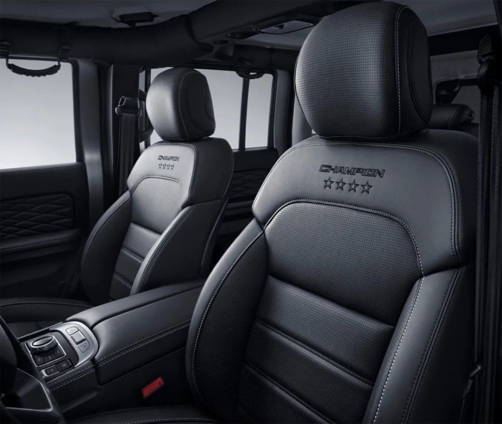 虽然内饰方面并不是硬派SUV所关注的点,但不得不说的是BJ40环塔冠军版内饰上悬浮式中控大屏加上全液晶仪表,增添了不少科技感,设计元素上也有奔驰的感觉,而且座椅靠背上还拥有环塔专属的刺绣标识。