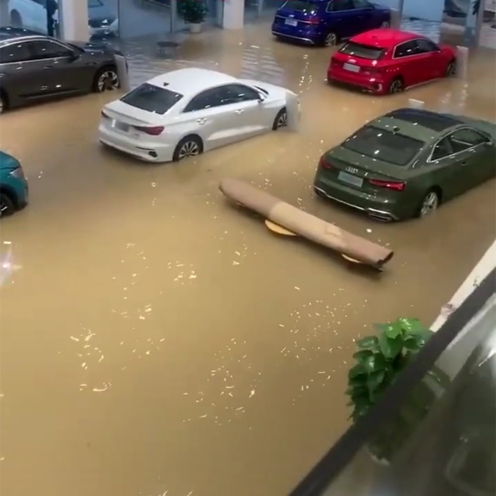 在郑州这场暴雨来袭中,若说损失较大的也莫过于汽车销售商了,这不在网上曝光的一段视频中,郑州一豪华奥迪4S店就深受其害。从网上曝光的这段视频可以看出,画面中有多辆崭新的奥迪新车遭遇雨水的浸泡,而旁人也只能静悄悄地等待雨水消退,这幅画面让人看着都是心疼啊!面对奥迪新车被雨水浸泡的场景,有人也表示为何不将新车挪个地方呢?其实正是由于奥迪新车在雨水中浸泡的原因,4S店人员并不是不愿意去挪车,而是为了将车辆泡水的损伤程度降到最低。试想若将雨水浸泡中的新车挪走,车辆或将面临着巨大的安全隐患。