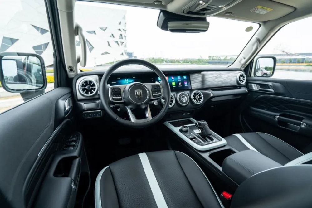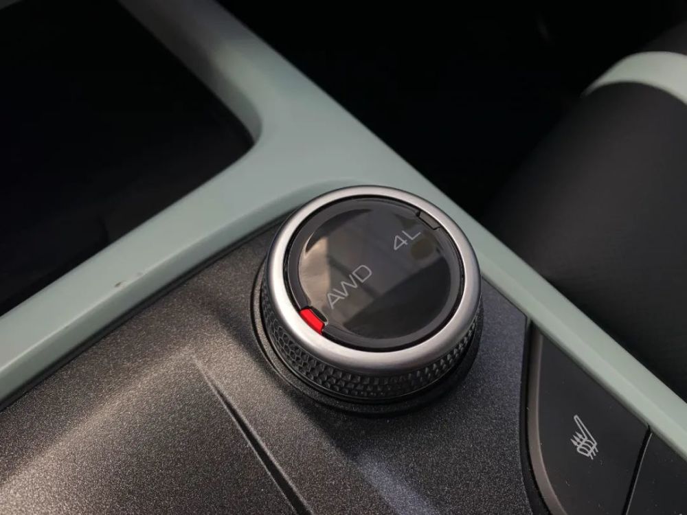 内饰设计方面,城市版跟越野版没有区别。不同在于内饰的颜色现在会根据你车身外观的颜色来做一个拼色,比如我这次开的这台种草绿,它的内饰就会有一些绿色的点缀,比如空调出风口和座椅。