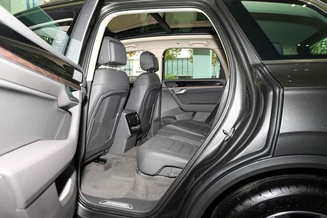 空间效果方面,作为一款中大型SUV,途锐并没有采用七座的设计方式,轴距2899mm全系采用五座,车厢内部空间宽裕。而外观长宽高为4878/1984/1686(1717)mm。全系采用了空气悬架,为途锐打下了非常扎实的舒适性,这也是同级别豪华品牌所没有给到的,即便是采用了空气悬架,更多是出现在高配版本,或者是选配。座椅全部都采用真皮,座椅通风/加热没有缺席,后排座椅支持前后、靠背多角度调节方式,舒适性无话可说。