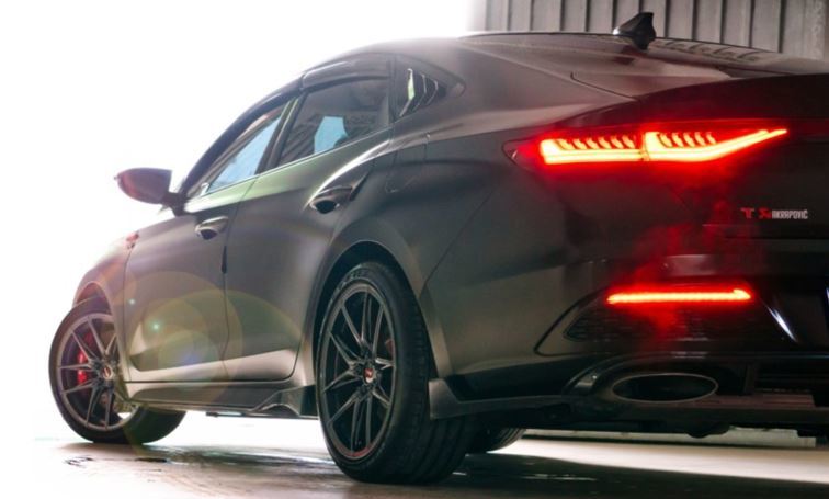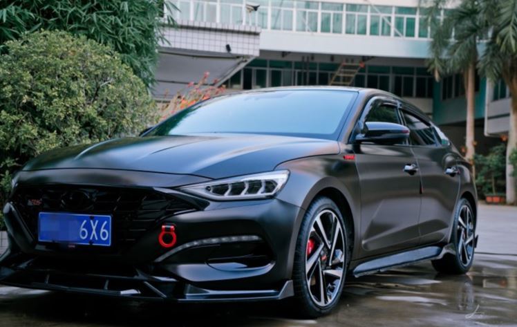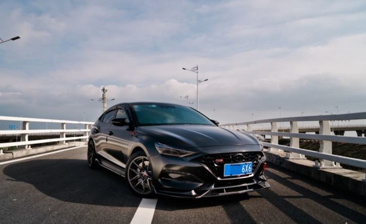 在外观的改装上,ShawnLee耗费的心思是最多的。从最明显的全车改色膜,到大灯熏黑、中网、前铲,侧裙、尾唇、发动机护板、后杠灯等这些他觉得能够“添彩”的装饰配置都尽力布置,最终练就了一辆闪耀在汕头街头的“黑武士”。