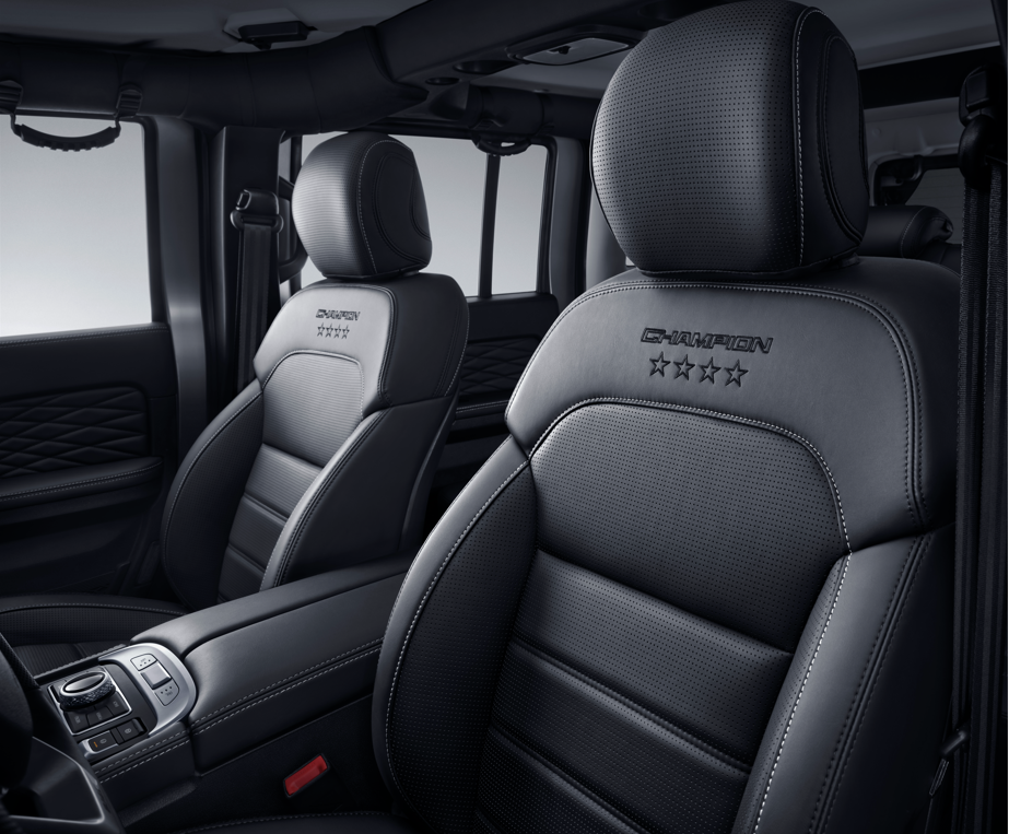新一代BJ40环塔冠军版把“冠军属性”深深铭刻于身,冠军主题耀眼夺目,荣耀冠军徽标、专属刺绣标识、专属仪表及中控主题更让人艳羡。这款车实行限量发售,每一台唯一的编号都值得珍藏。