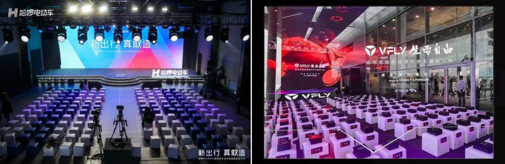 比如雅迪高端品牌VFLY发布前,其官方视频号发布的一条预热视频,通过谐音梗暗讽“不要哈喽”。同时在发布会现场布置、系统解读动画、机器人形象和产品概念包装等方面,也疑似与哈啰电动车的VVSMART超连网车机系统出现了“撞车”。