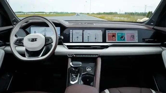 我想,绝大部分人对吉利星越L精致感的第一印象,应该是来源于内饰。一是是内饰三联屏的设计在传统的燃油车上极为罕见,二是这辆车的内饰用料以及内饰的配色氛围的确很高端。