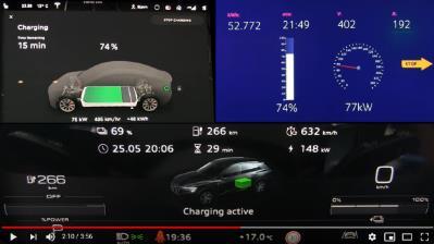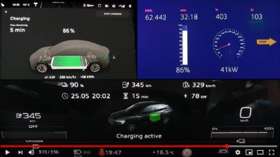 有人在Ionity的350kW充电桩上做了一个真实的测试[9]。如视频截图所示: