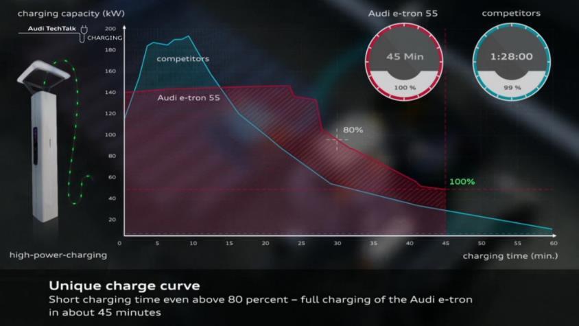 奥迪e-tron与竞品的充电平均速率对比测试,图片来源[9]