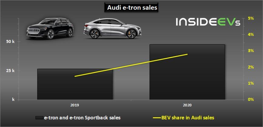 奥迪e-tron的2020年销量增长79.5% 图片来源[2]