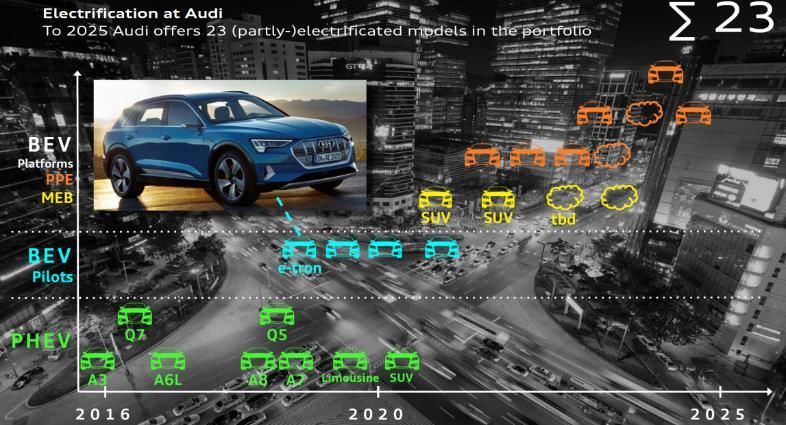 免息36个月之后,消费者也有多种选择,既可以选择结清余款,也可将贷款展期,或者是核定折旧后将车还回去还有一种比较划算的方式,就是最高可以2年原值或3年9折置换奥迪其他车型 —— 我们都知道电动汽车技术进步快,比如奥迪在2025年之前计划推出23款电动车(8款PHEV+15款纯电)。有此政策的支持,在开三年奥迪e-tron之后,赶在2025年之前就可以在多款奥迪纯电车型中换新的来开了。