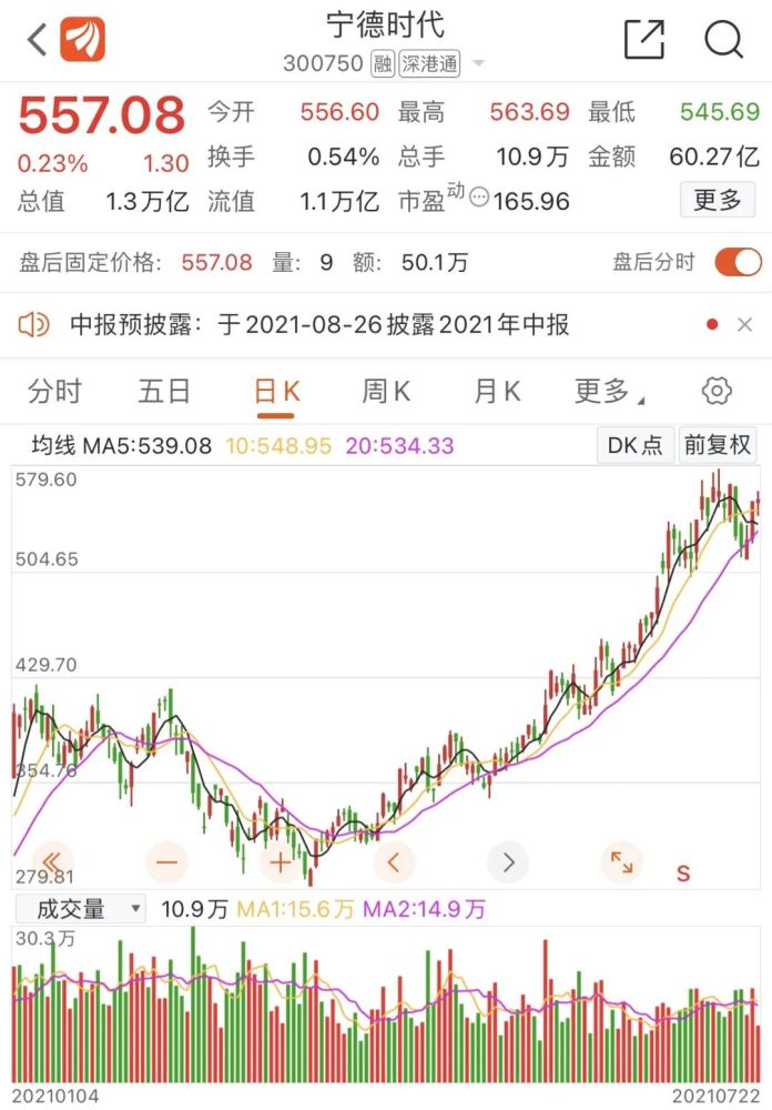 不过,纵使前路漫漫,从目前资本市场的反应来看,宁德时代还是颇受资本青睐的。截至7月22日收盘,宁德时代报557.08元/股,涨0.23%,总市值1.297万亿元,还是深市的老大哥。且从2021Q2的公募基金重仓股来看,宁德时代也被各位基金经理积极增持,由第七大重仓股一跃成为仅次于茅台的第二大重仓股。