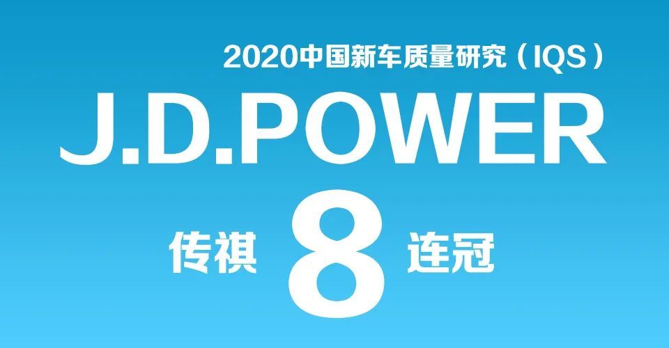 2020年,广汽传祺连续八年在J.D. Power中国新车质量研究(IQS)中荣膺主流车市场中国品牌第一,创造了中国品牌历史最好成绩。