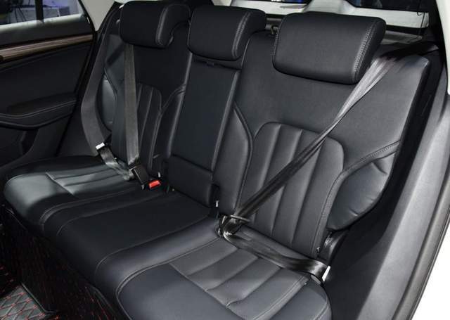 侧面来看,这款车造型比较立体,并且采用了双腰线设计,上扬的趋势营造出向前俯冲的运动效果,搭配顶部的行李架,整车就是为年轻人准备的,尺寸方面,这款车长宽高为4580mm,1936mm和1674mm,轴距2716mm,车尾的设计层次感很强,小尾翼、高位刹车灯、鲨鱼鳍等配件应有尽有,底部银色护板采用三处镂空设计,搭配两侧单出尾排,设计感十足。