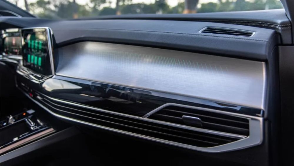 首先,副驾驶的装饰板虽然感觉挺有质感,但同行坐在副驾驶的同行媒体朋友却发现,在阳光照下,这块装饰板特别晃眼,而且它还是“凹透镜”的形状,坐在这个位置恐怕会比主驾驶位更容易晒黑。