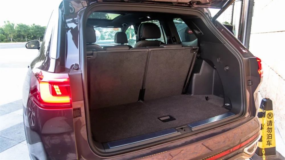 像揽境这样的大块头,空间当然也不会差到哪里去,第二排座椅稍微往前调一调,第三排的空间也不会到让人感到憋屈的地步,只是凳式坐姿无可避免。不过,作为一款三排设计的SUV,揽境在坐满人的情况下,竟然还挤出一个足以放下几个20寸旅行箱的后备箱空间,能办得到这种事的车,国内市场还真没多少辆。
