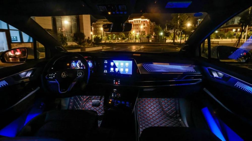 它的灯光设计不再局限于常规的大灯、尾灯等灯具上,而是做了一定的延伸,像车头的日行灯,它直接在进气格栅上也加了一条,与两侧大灯里的日行灯贯通,而尾灯则直接采用贯穿式设计,车标上也加入了光源,晚上只要灯光打开,不管是车头还是车尾都很漂亮。当然,这种设计也让某些造车新势力的粉丝很不服气,你大众不也抄造车新势力的点子吗?