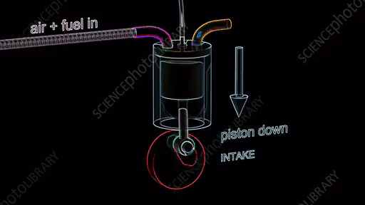 就是汽油与空气混合物在发动机的燃烧室内燃烧,产生的能量带动活塞运动,进而带动曲轴旋转产生机械能,为燃油车提供动力。简单来说,燃油车的工作原理就八个字:进气、压缩、做功、排气。