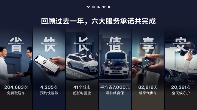 在服务方面,沃尔沃不遗余力地为百万车主保驾护航。提出六大服务承诺,包括预约快速养、免费取送车、尊享代步车、超长时营业、 零件终身保、全天候守护。其中的免费取送车服务,现已100%覆盖全国沃尔沃经销商。累计向10万多位车主提供19万余次服务。