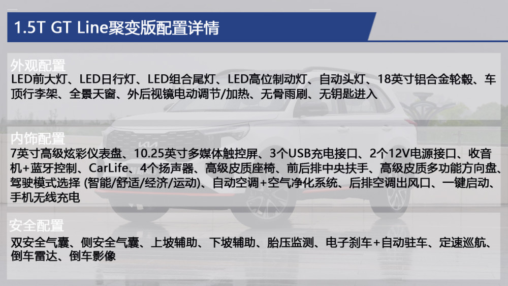 1.5T GT Line聚变版的亮点在于搭载动力更为强劲的1.5T发动机,配置上与2.0L挑战版基本保持一致,但多出一项手机无线充电功能,如果对动力要求较高的消费者,建议选择这款车,是我们的次推荐车型。